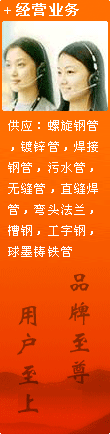 本公司主要生產(chǎn)經(jīng)營(yíng):螺旋管,焊接鋼管,無縫管,鍍鋅鋼管,球墨鑄鐵管,直縫鋼管,角鐵,工字鋼,彎頭法蘭等。產(chǎn)品廣泛應(yīng)用于市政工程,供水管道,污水排放,供熱管網(wǎng),煤氣管網(wǎng),煤井礦山,通風(fēng)管道,建筑工程,鋼結(jié)構(gòu),打樁,橋梁,碼頭等領(lǐng)域。同時(shí)本公司配有防腐加工廠,專業(yè)對(duì)鋼管進(jìn)行內(nèi)外壁防腐加工,鋼管外壁主要有三油兩布,五油三布,環(huán)氧煤瀝青及環(huán)氧樹脂漆以及各種高分子涂料。鋼管內(nèi)壁主要有無毒飲用水涂料IPN8710-2B,水泥砂漿及各種環(huán)氧涂料。螺旋鋼管材質(zhì)為:Q235 也可按客戶需要自選材質(zhì)。螺旋鋼管的標(biāo)準(zhǔn)依據(jù)為:SY/T5037標(biāo)準(zhǔn)生產(chǎn)和檢驗(yàn)。定尺長(zhǎng)度通常為:12000mm,也可以生產(chǎn)不同長(zhǎng)度的管材。